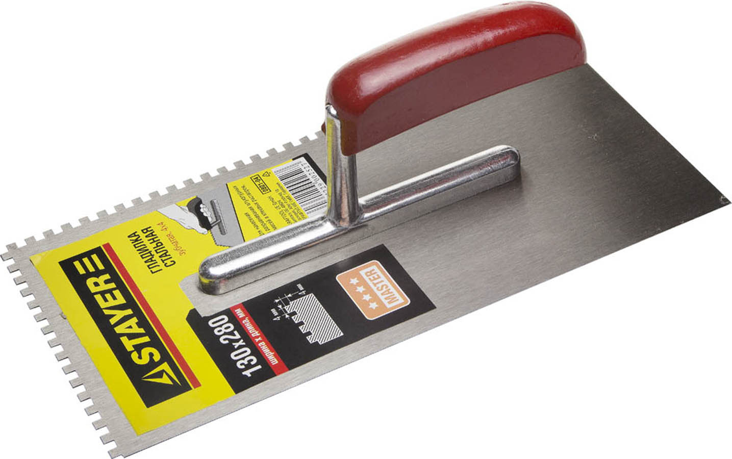 STAYER 130х280 мм, 4х4 мм, гладилка штукатурная зубчатая стальная с деревянной ручкой