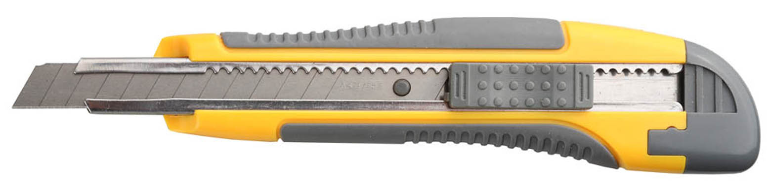 Нож с сегментированным лезвием STAYER 0903, предназначен для эффективного реза различных материалов: бумаги, картона, обоев и пленки.