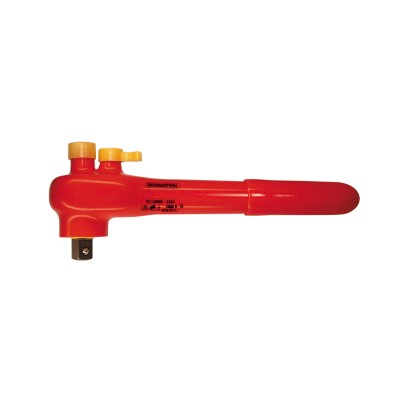 Umschaltknarre DIN 7449, durch Knopfdruck Festhalten oder Lösender Einsätze; Rechts-/Linksgang durch Umlegen des Hebels,Zweifarb-Mehrschichtisolierung nach IEC 60900:2004, 1000 VInhalt