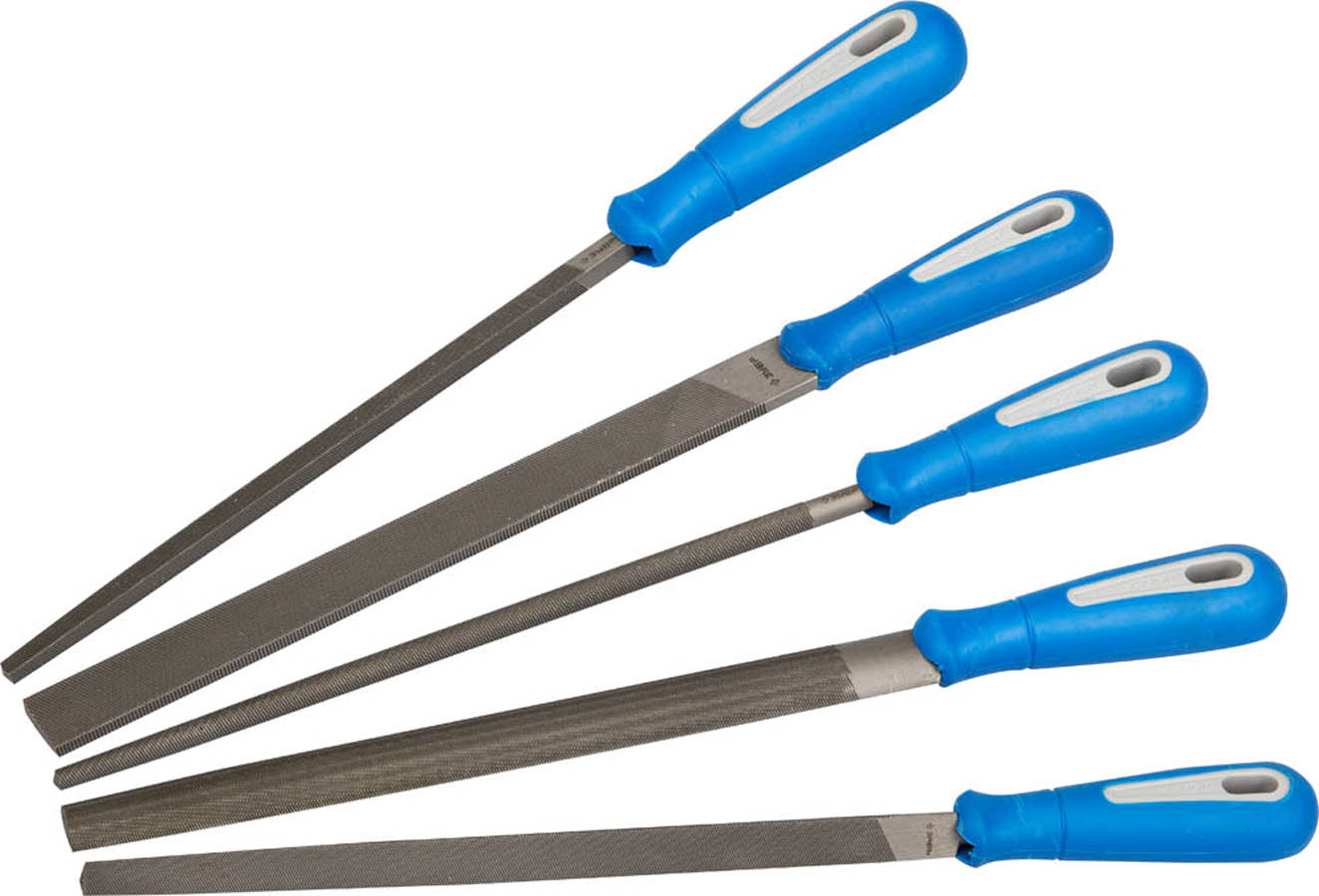 Набор ЗУБР: Напильники "ПРОФЕССИОНАЛ" с двухкомп ручкой, плоский, полукруглый, трехгранный, квадратный, круглый, №2, 250мм