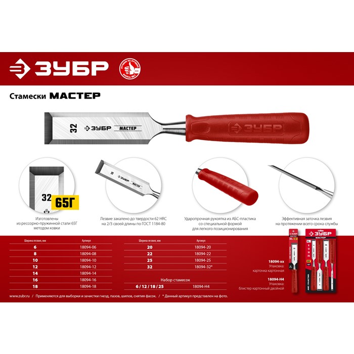 Cтамески ЗУБР изготовлены из высококачественной инструментальной стали, соответствуют высоким техническим требованиям. Обладают повышенным ресурсом и обеспечивают длительную и качественную работу