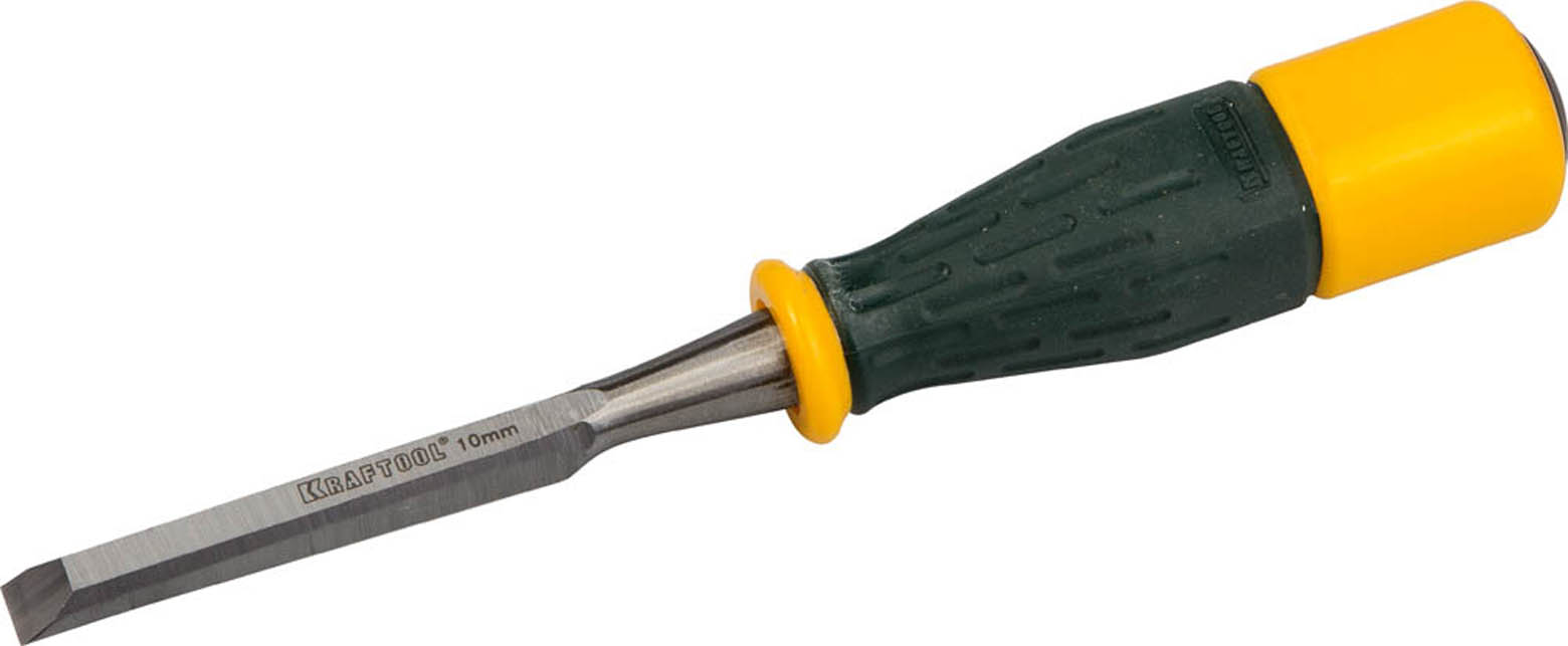 Стамеска KRAFTOOL "EXPERT" упрочненное полотно, ударочпрочная двухкомп ручка, стальной затыльник для ударных работ,10мм
