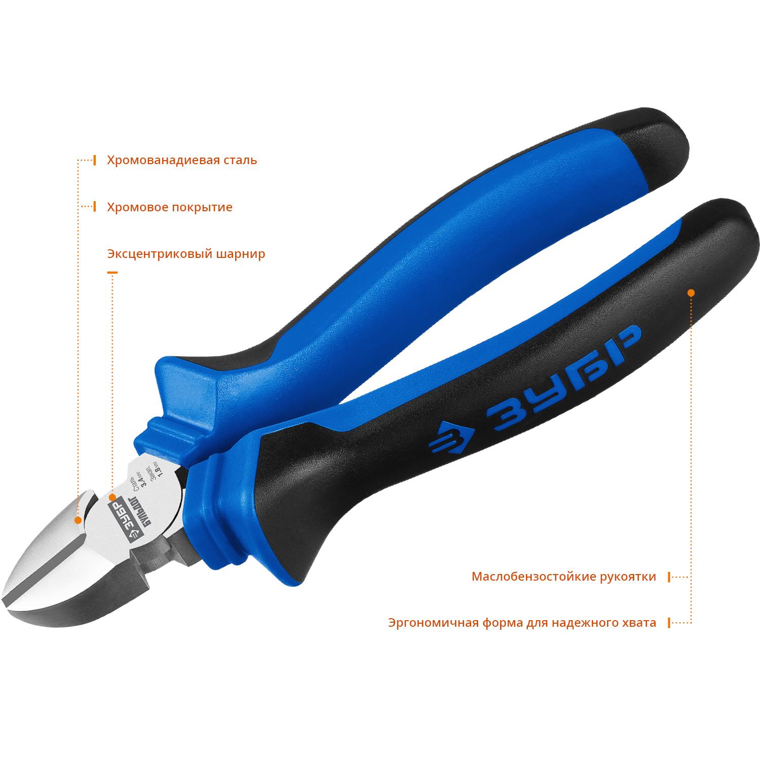 Бокорезы "БУЛЬДОГ", эксцентриковое расположение шарнира, особостойкое спец.покрытие Н12Х1(никель/хром), двухкомп рукоятки, 160мм, ЗУБР Профессионал