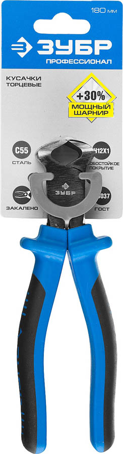Кусачки торцевые ЗУБР, особостойкое спец. покрытие Н12Х1 (никель/хром), двухкомпонентные рукоятки, 180мм