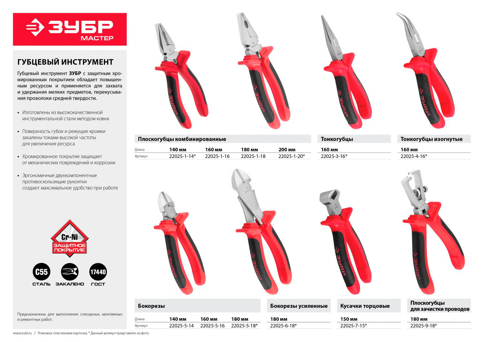 Бокорезы ЗУБР 22025-5-14, предназначены для захвата и удерживания мелких предметов, перекусывания проволоки средней твердости. Изготовлены из высококачественной инструментальной стали методом ковки. Поверхность губок и режущие кромки закалены токами высокой частоты для увеличения ресурса. Хромированное покрытие защищает от механических повреждений и коррозии. Эргономичные двухкомпонентные противоскользящие рукоятки создают максимальное удобство при работе.