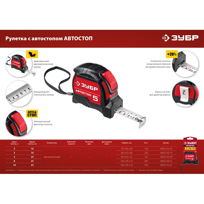Рулетка с автостопом ЗУБР Автостоп 5м х 25мм