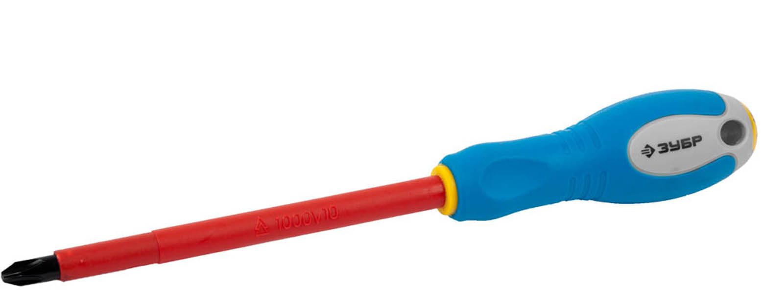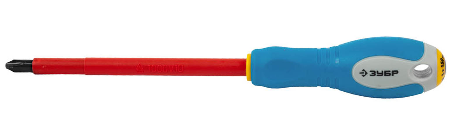 ЗУБР "ПРОФИ ЭЛЕКТРИК". Отвертка Cr-V, трехкомпонент рукоятка, высоковольтная до ~1000В, PH №3, 150 мм