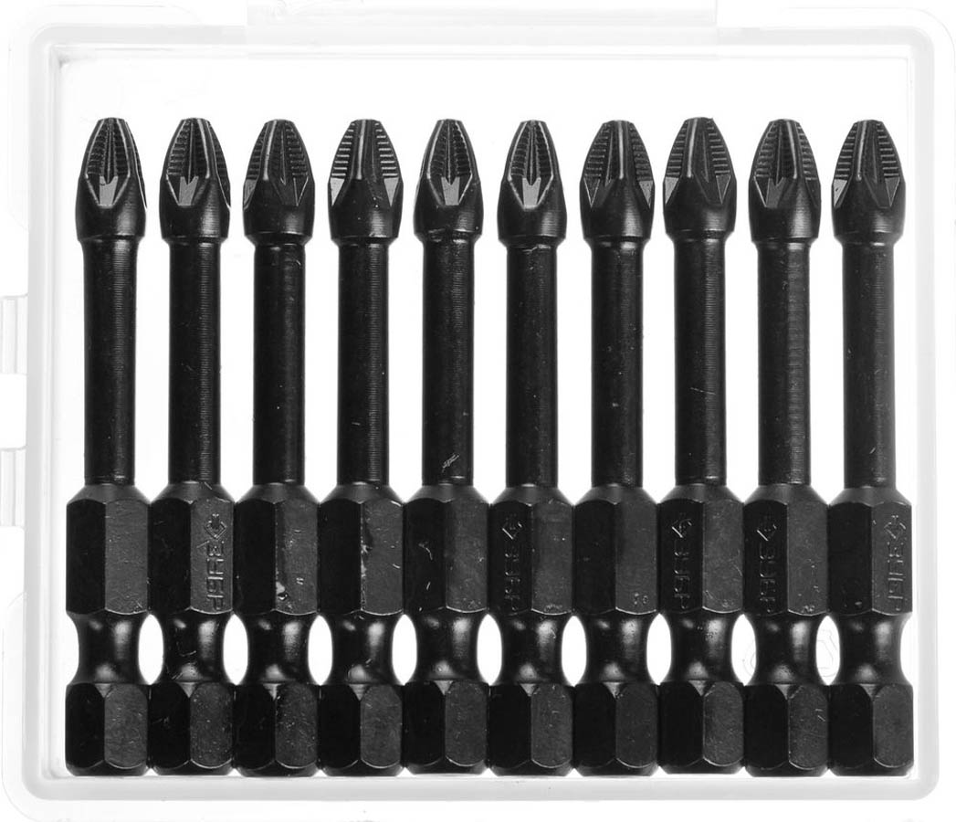 Биты ЗУБР "ПРОФИ" Pozidrive, тип хвостовика E 1/4", PZ2, 50мм, 10шт, в пластиковом боксе, на карточке