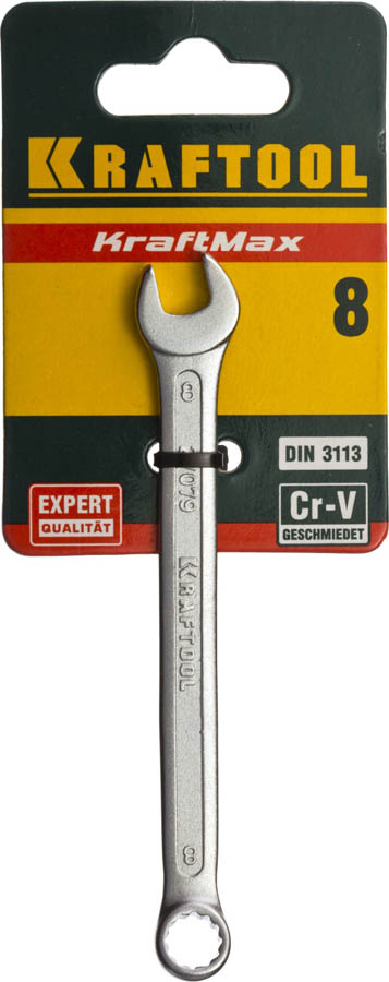 KRAFTOOL 8 мм, Cr-V сталь, хромированный, гаечный ключ комбинированный 27079-08