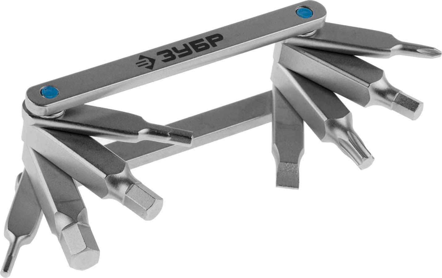 Набор ЗУБР "ЭКСПЕРТ": Ключи имбус,универс,складные,Cr-V,сатинир покрытие,суперкомпактный,HEX,TORX,PH №1,SL 5мм,8-в-1