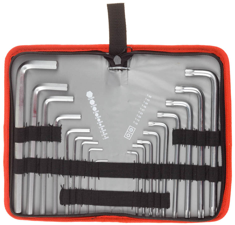Набор ключей имбусовых ЗУБР "МАСТЕР"Cr-V,нейлон чехол,HEX 1,5-10 мм длинные 9 шт,TORX Т10-Т50 длинные 9 шт