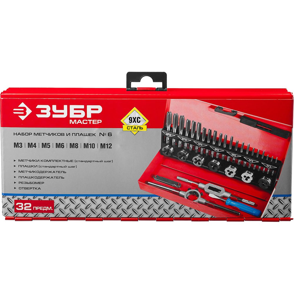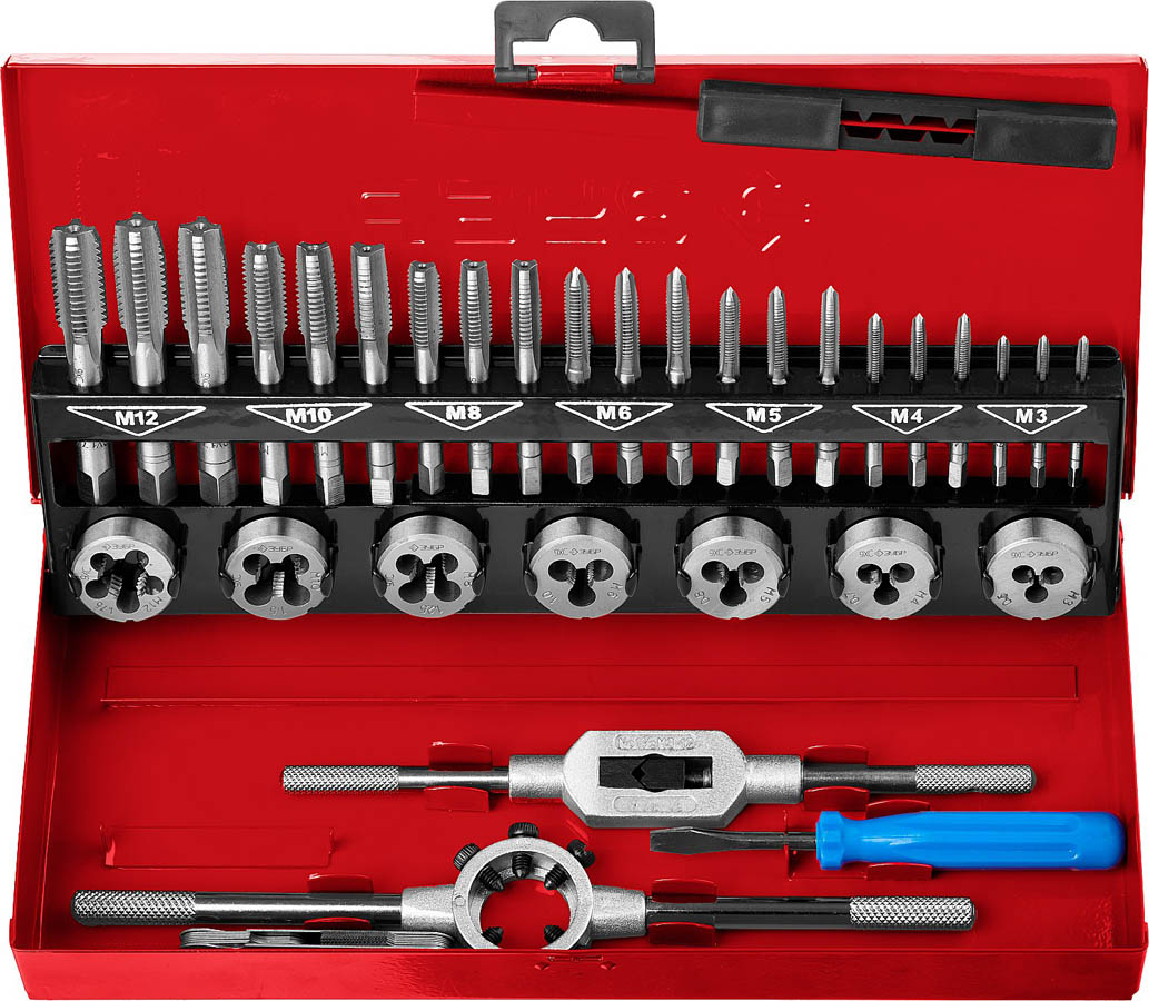 Набор метчиков и плашек ЗУБР "МАСТЕР", сталь 9ХС, 32 предмета