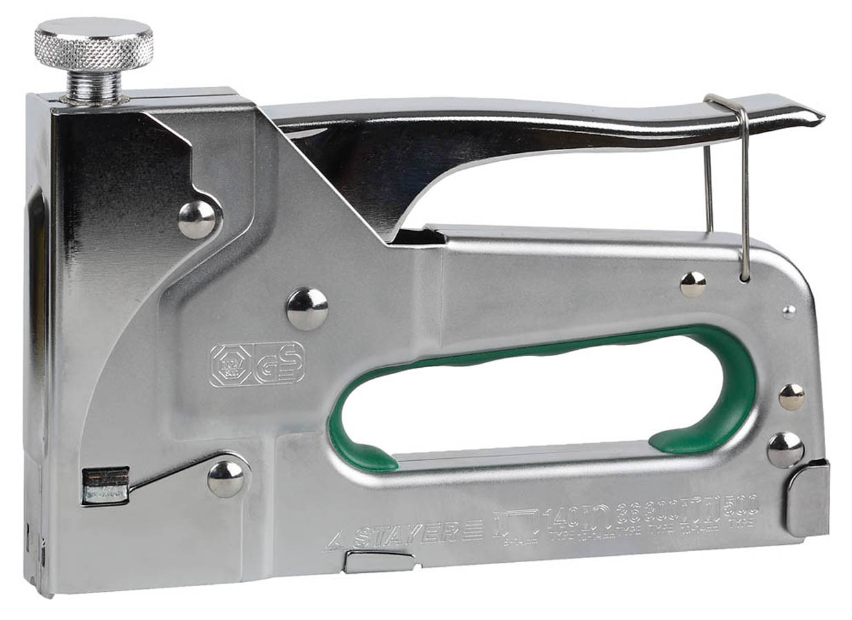 Степлер мебельный строительный STAYER 31510, предназначен для профессионального применения. Обладает повышенным ресурсом, обеспечивает длительную и качественную работу. Специальная конструкция позволяет работать со скобами, штифтами, гвоздями и кабельными скобами. Цельнометаллический корпус повышает прочность и увеличивает срок службы инструмента. Пружина и боек из закаленной инструментальной стали обеспечивают высокую надежность конструкции.