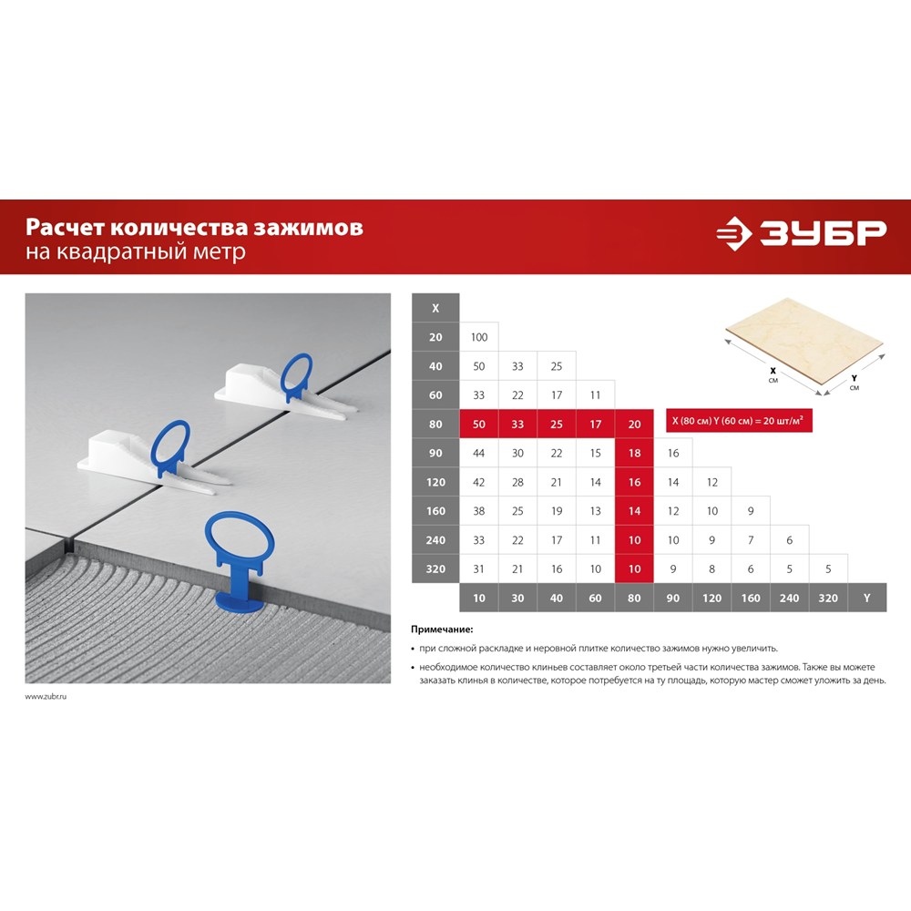 Сделан из прочного пластика, он не деформируется при зажимании и надежно удерживает плитку в единой плоскости, обеспечивая отсутствие проседания во время высыхания плиточного клея. Позволяет работать с плиткой толщиной от 3 до 12 мм.