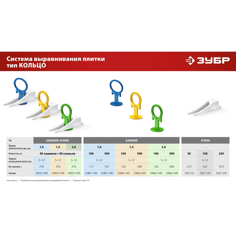 Система выравнивания плитки КОЛЬЦО, 1,5 мм, зажим, 500 шт (33860-500)