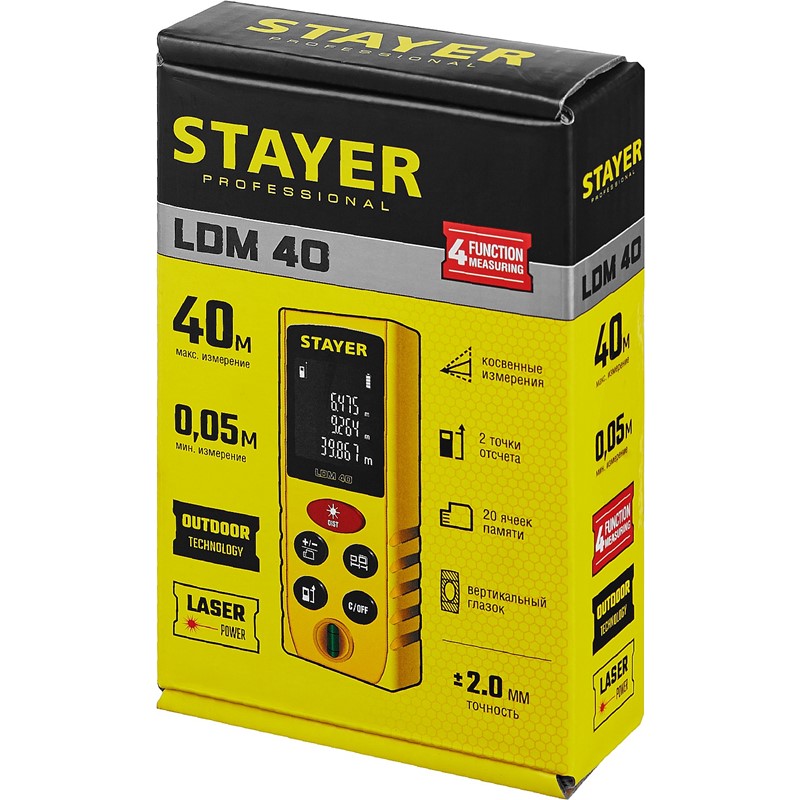 Дальномер лазерный, "LDM-40", дальность 40 м, 5 функций, STAYER Professional