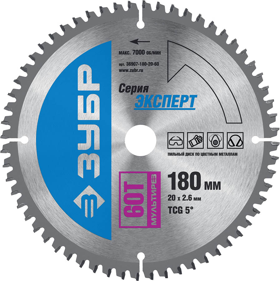 ЗУБР Мультирез 180 x 20 мм 60Т, диск пильный по алюминию (36907-180-20-60, )
