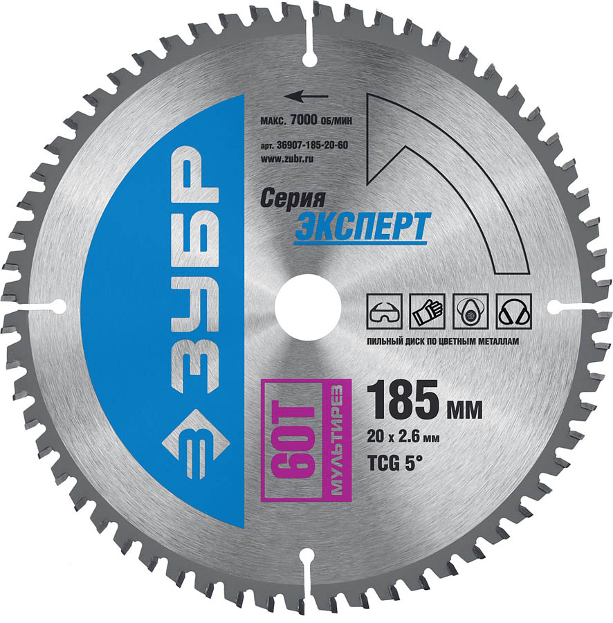 ЗУБР Мультирез 185 x 20 мм 60Т, диск пильный по алюминию