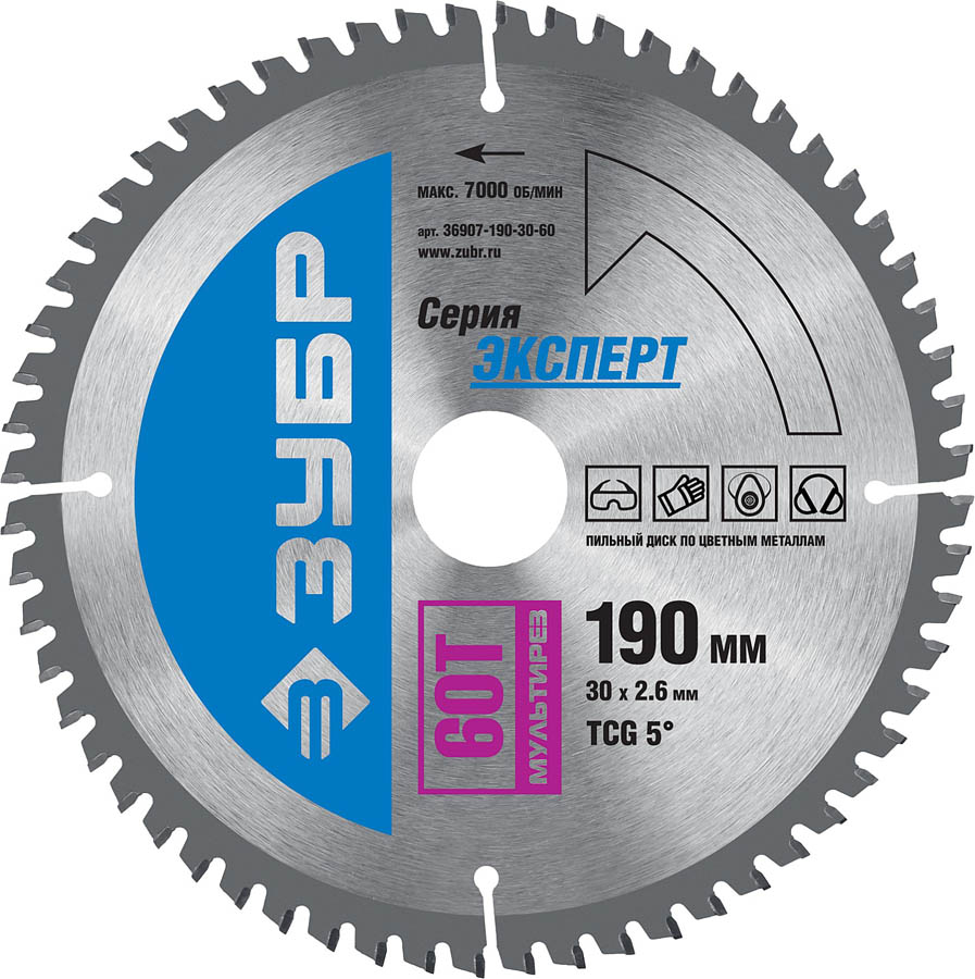 ЗУБР Мультирез 190 x 30 мм 60Т, диск пильный по алюминию (36907-190-30-60, )
