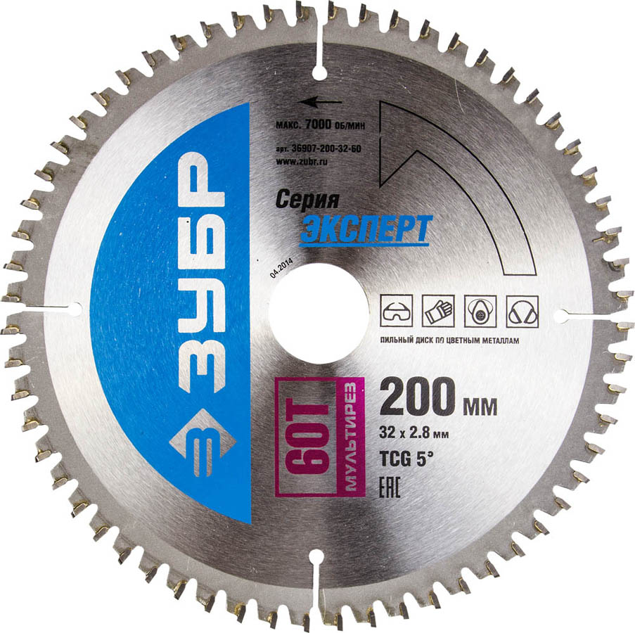 ЗУБР Мультирез 200 x 32 мм 60Т, диск пильный по алюминию (36907-200-32-60, )