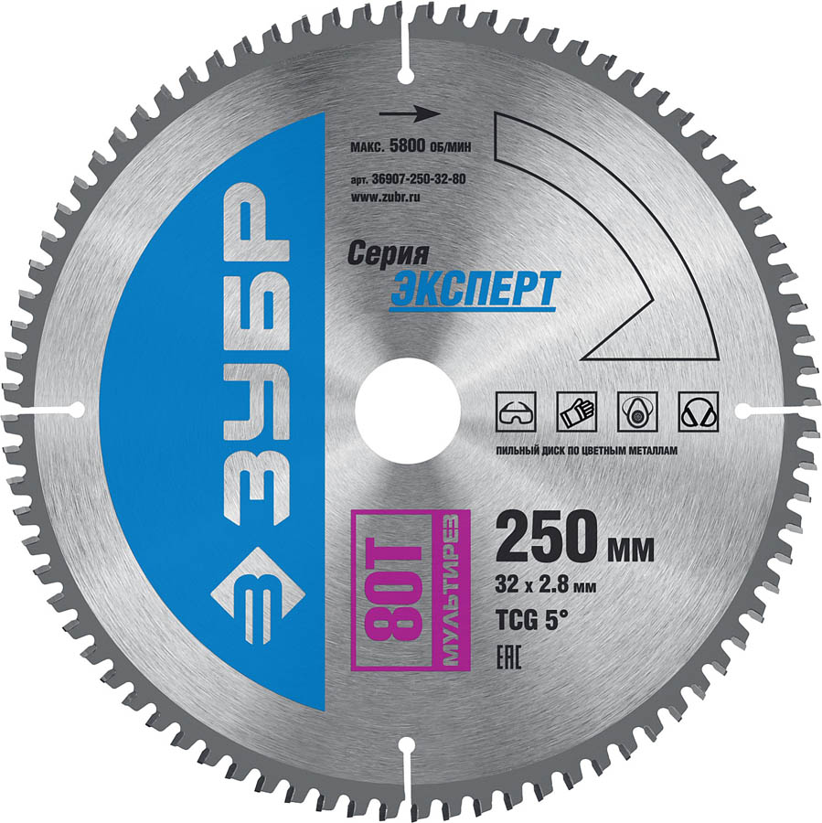 ЗУБР Мультирез 250 x 32 мм 80Т, диск пильный по алюминию