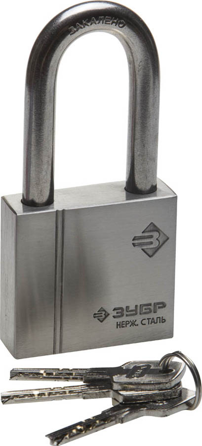 Замок ЗУБР "ЭКСПЕРТ" навесной, нержавеющая сталь (корпус и дужка), удлиненная закаленная дужка, 60мм