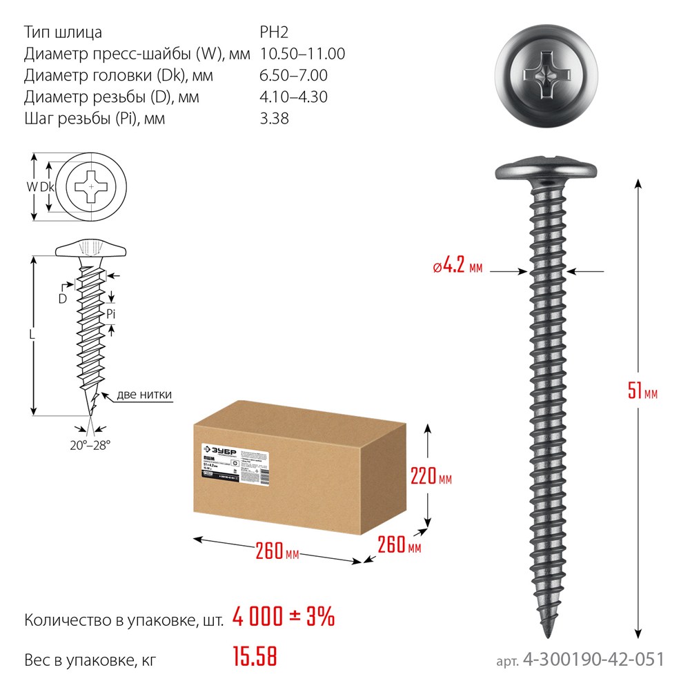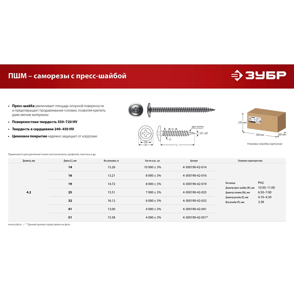 ЗУБР ПШМ 51 х 4.2 мм, саморез с пресс-шайбой, цинк, 15.58 кг (4000 шт.) (4-300190-42-051)