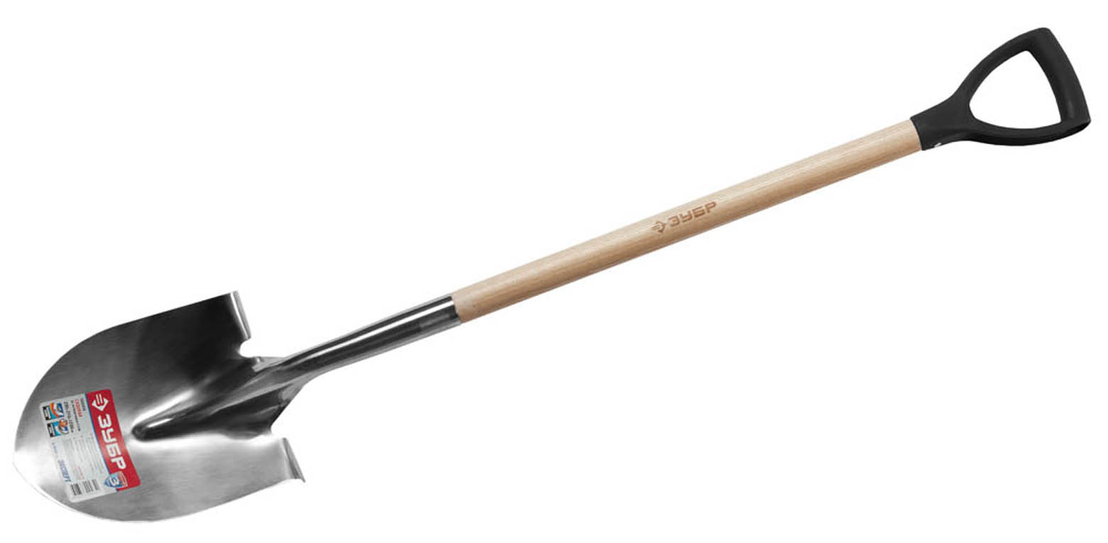 Лопата штыковая для земляных работ из нержавеющей стали, деревянный черенок, с рукояткой, ЗУБР Профессионал