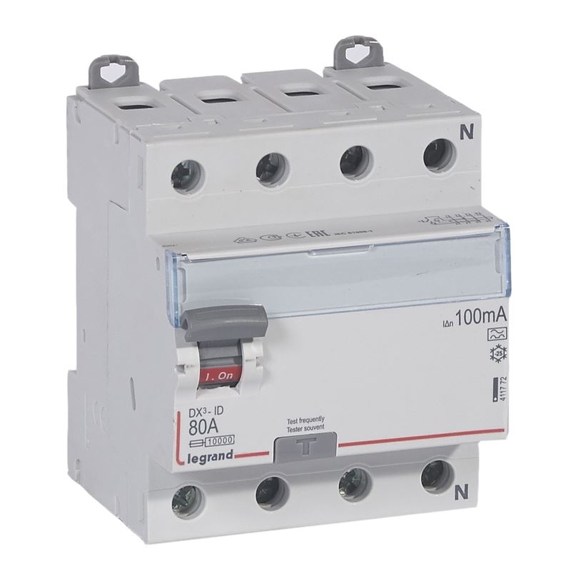 Legrand DX3 УЗО 4P 80А A 100мА N справа