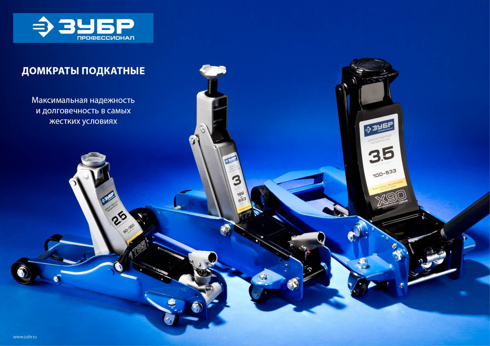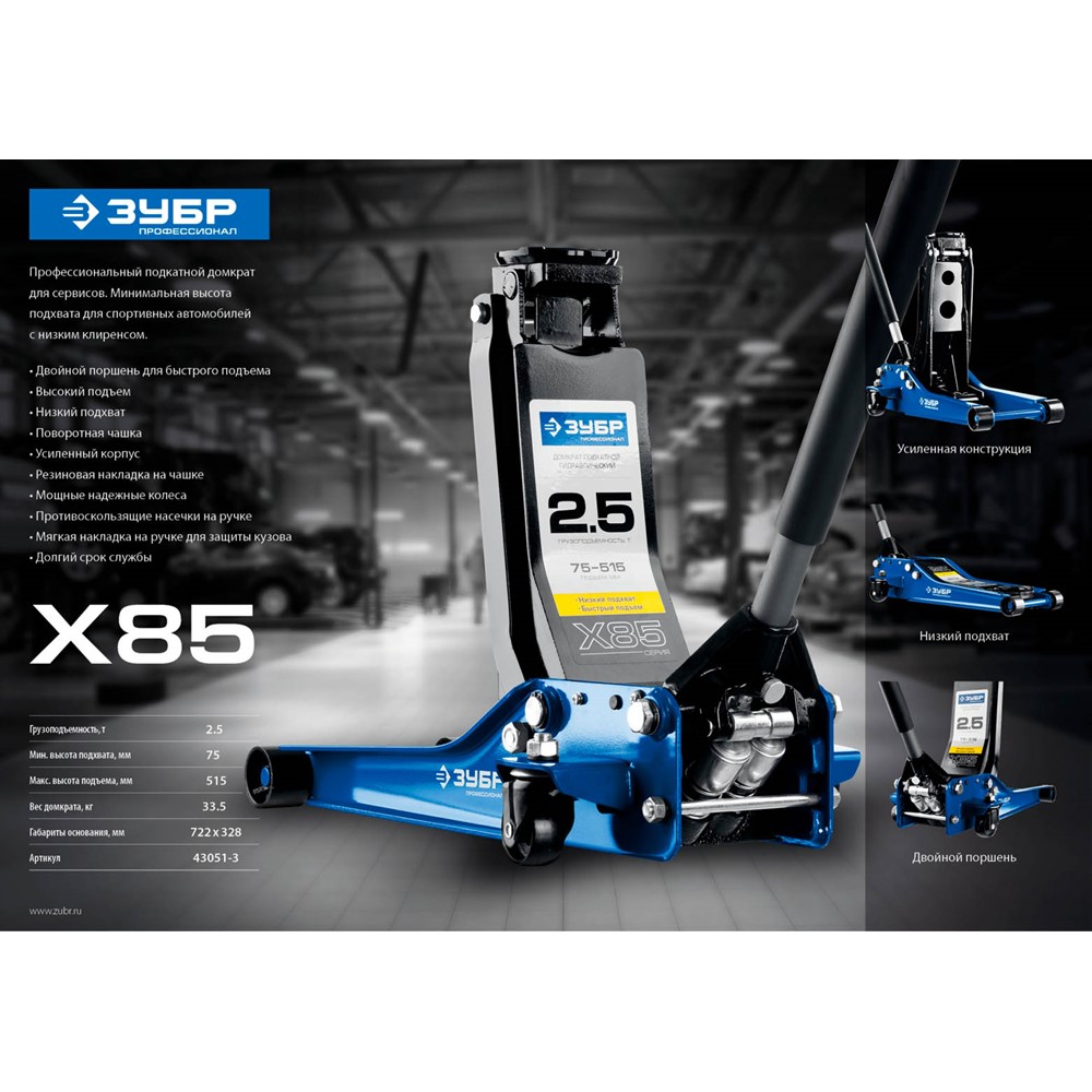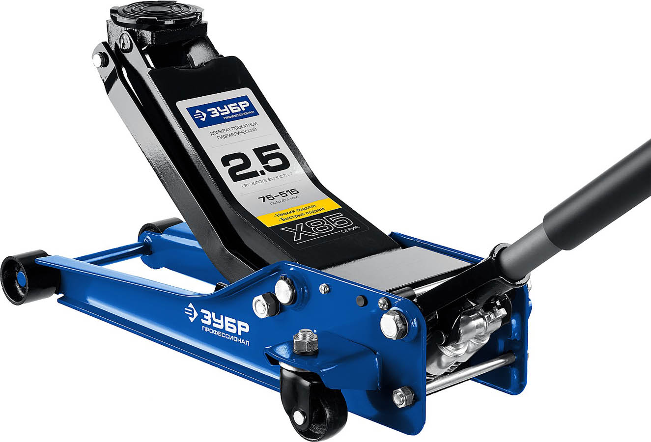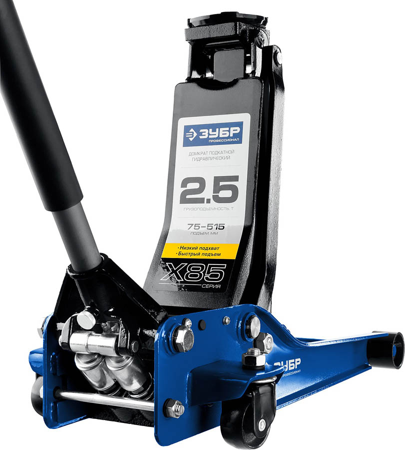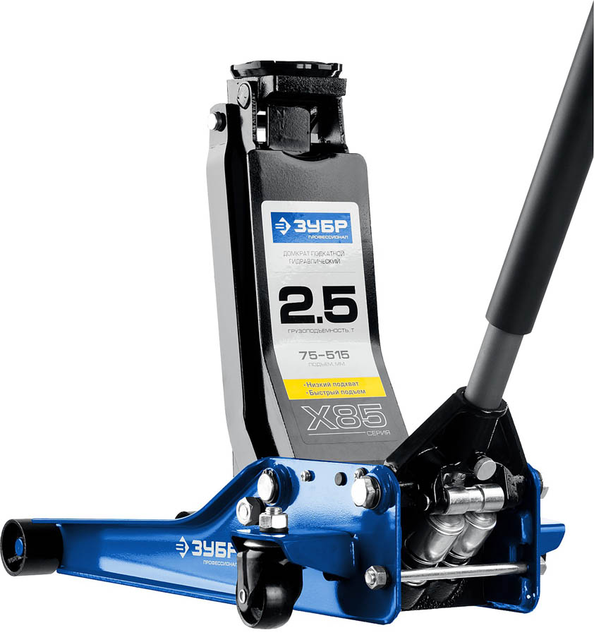 Домкрат гидравлический подкатной X85, 2,5т, 75-515мм, ЗУБР Профессионал 43051-3