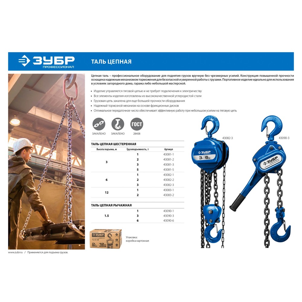 ЗУБР 1 т, 12 м, таль ручная цепная шестеренная ТШ-1-12 43083-1