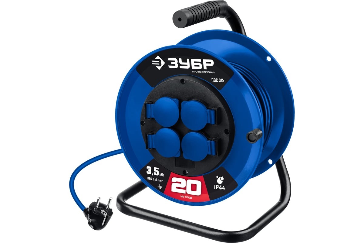 Силовой удлинитель на катушке ЗУБР 55081-20_z01, применяется для подключения электрических приборов к сети, предназначен для использования, как в помещении, так и на улице.