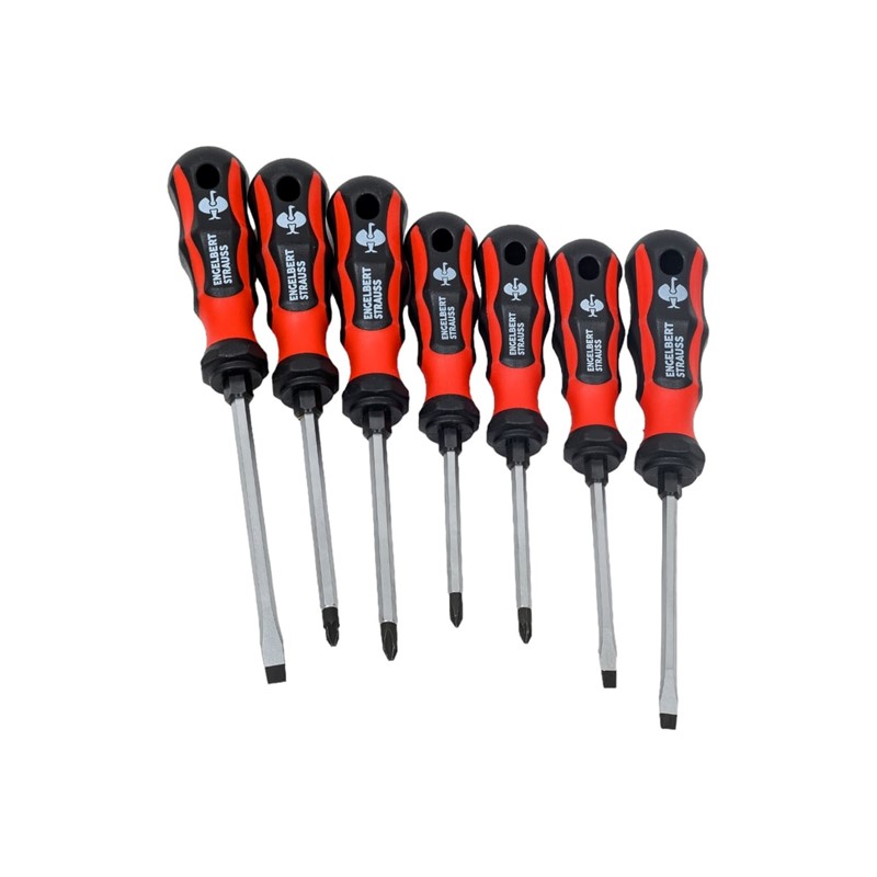 - 7x Отверток - 0.8 x 4.5 / 80 / 100, 1.0 x 5.5 / 100 / 110, 1.2 x 6.5 / 125 / 110, PH 1 / 80 / 100, PH 2 / 100 / 110, PZ 1 / 80 / 100, PZ 2 / 100 / 110