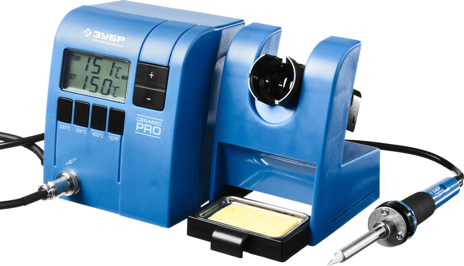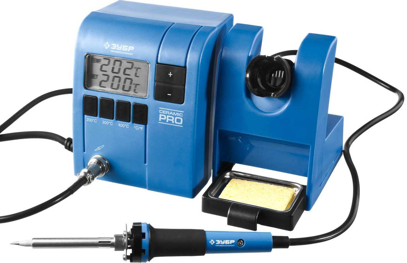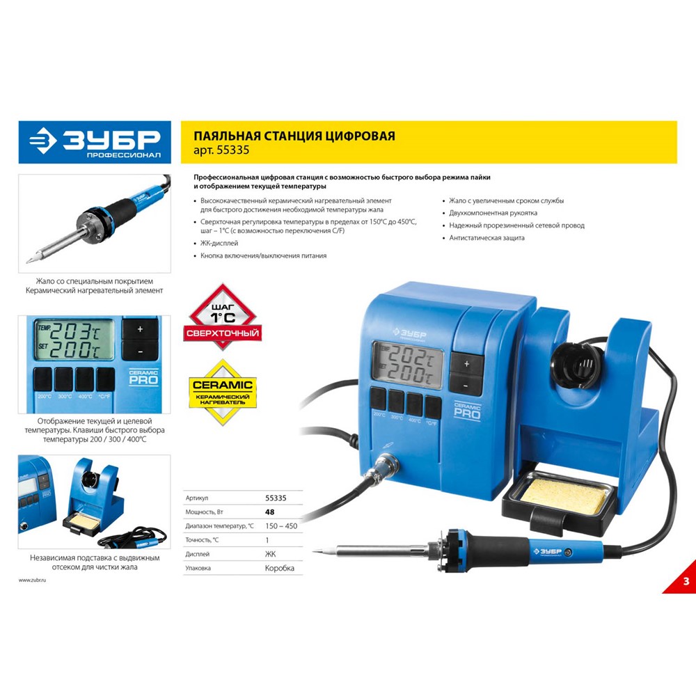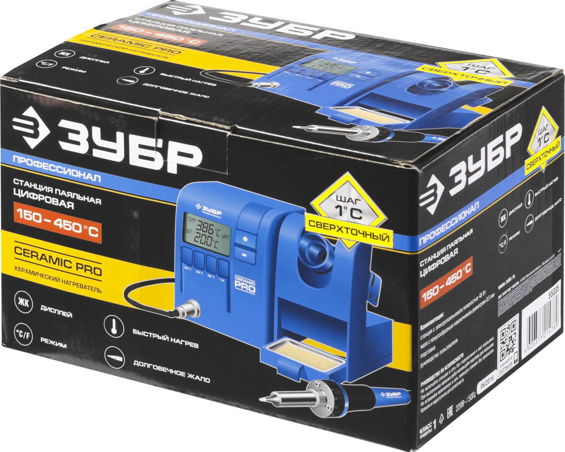 Паяльная станция ЗУБР "ПРОФИ" цифровая с ЖК дисплеем, керамический нагреватель, диапазон 150-450°C, 48Вт