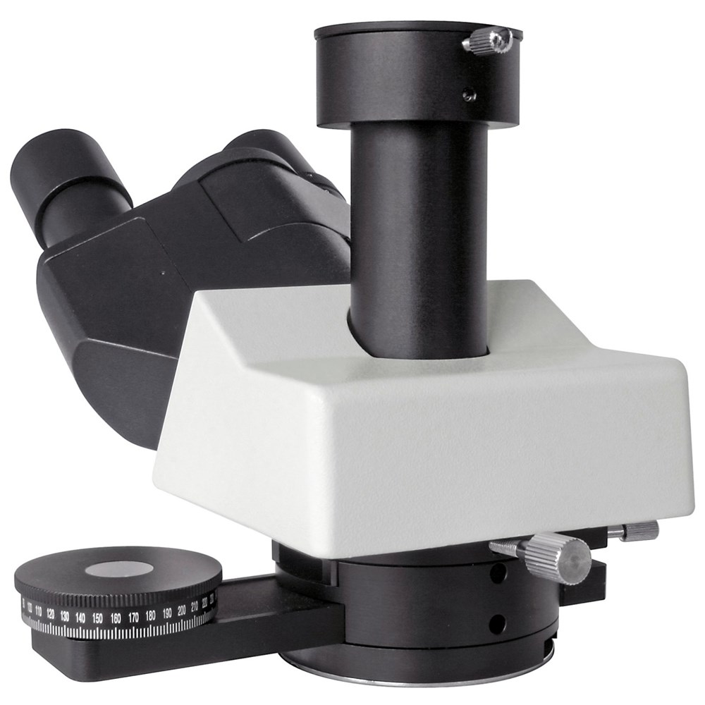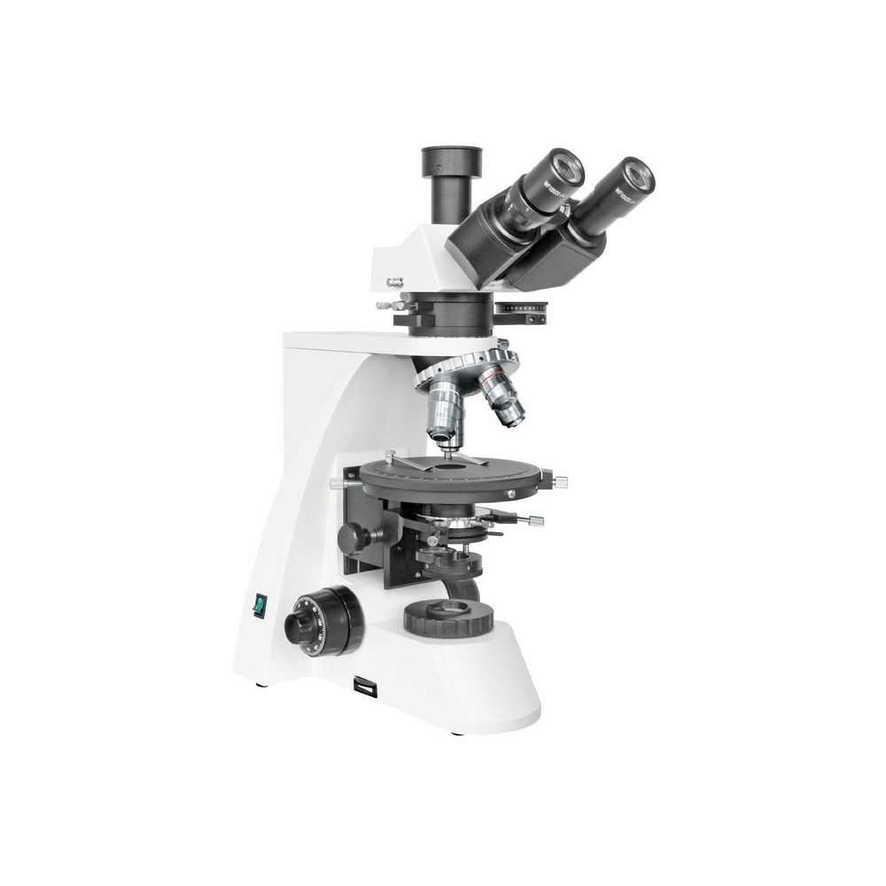 Микроскоп для исследований в поляризованном свете и светлом поле Конденсор Аббе N.A.=1,25 с поляризационным фильтром и ирисовой диафрагмой Круглый предметный столик с углом поворота 360 градусов Мощная галогенная подсветка 6В/20ВтКомплектация:
