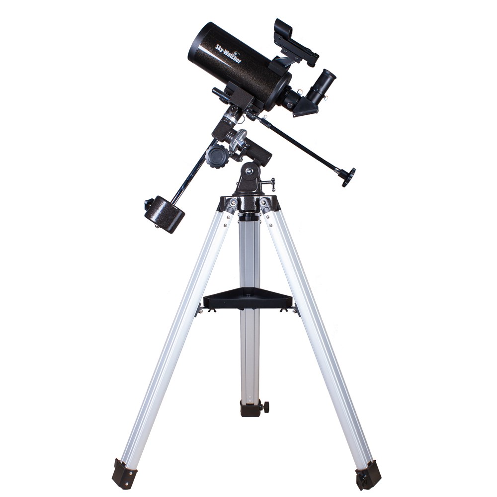 Катадиоптрик. Апертура: 90 мм. Фокусное расстояние: 1250 мм. Sky-Watcher BK MAK90EQ1 – это небольшой катадиоптрик для изучения планет Солнечной системы и объектов дальнего космоса. Благодаря компактным размерам его удобно транспортировать. Труба сконструирована по оптической схеме Максутова-Кассегрена. Качественная оптика обеспечивает передачу четкого изображения. Телескоп комплектуется двумя окулярами. Начинать наблюдения лучше с окуляра с большим фокусным расстоянием, поскольку он имеет более широкое поле зрения. Оптическая труба устанавливается на экваториальную монтировку. Монтировки такого типа позволяют перемещать трубу в соответствии с суточным движением объектов. Благодаря алюминиевой треноге конструкция стабильна и устойчива.