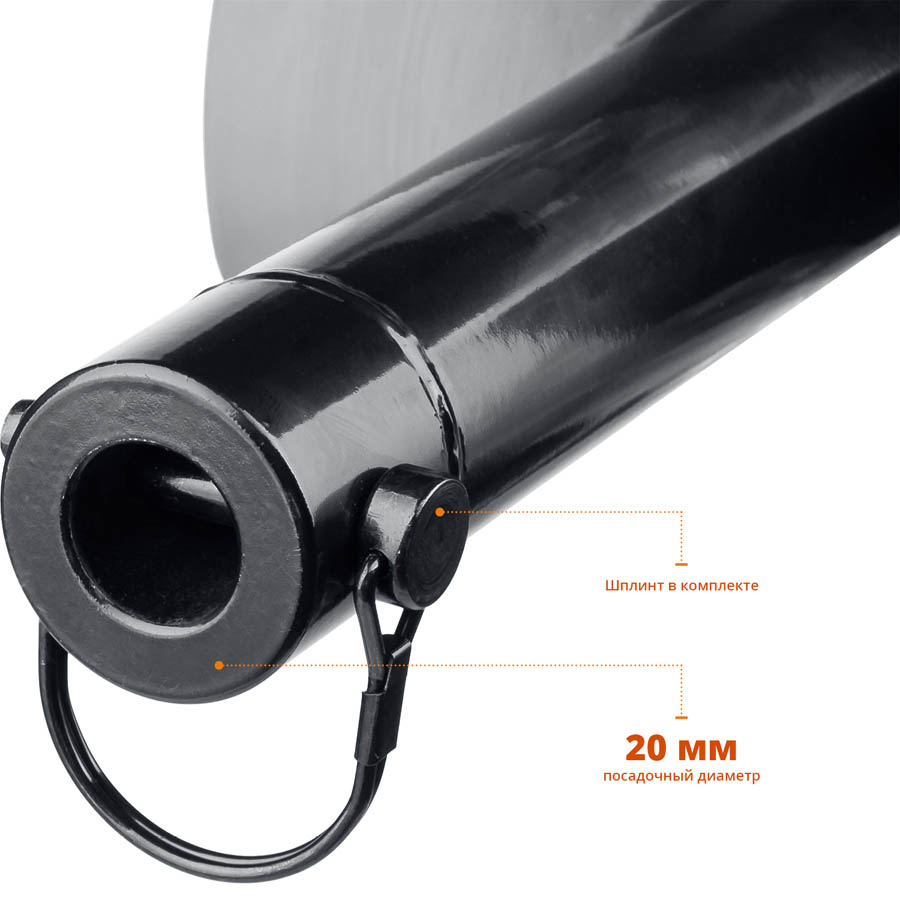 Шнек для мотобуров ЗУБР 7052-20, применяется для бурения отверстий определенного диаметра в замерзшей почвы. Шплинт в комплекте. Изготовлен из конструкционной рессорно-пружинной стали.
