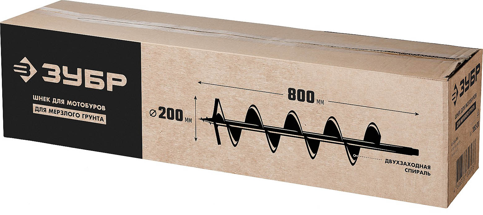 Шнек для мотобуров, мерзлый грунт, d=200 мм, двухзаходный, ЗУБР