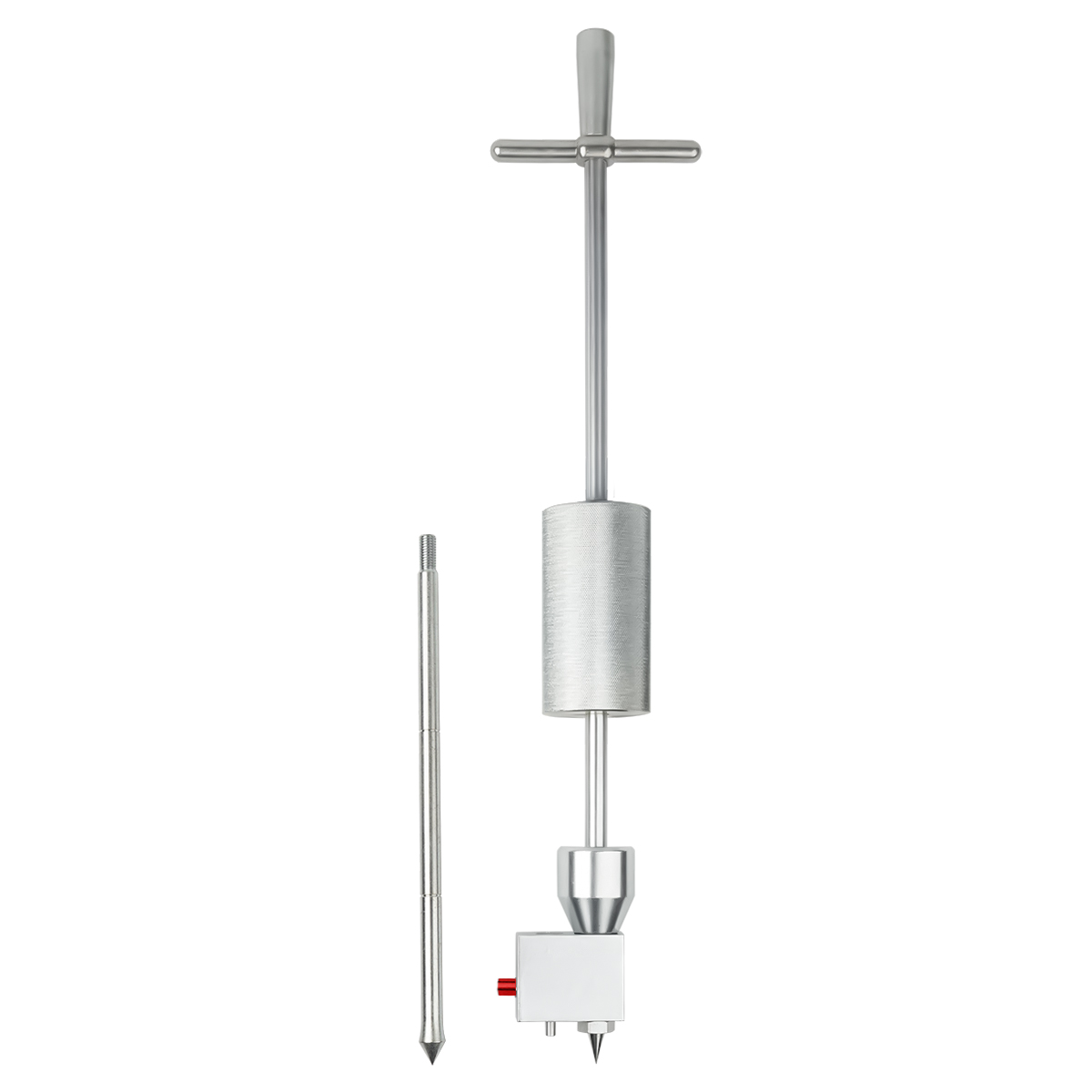 Для работы с различными материалами динамический плотномер RGK ДПУ оборудуется съемным рабочим узлом. Для сыпучих материалов и грунта используется стержень с наконечником, а для асфальтобетонных смесей – конусная насадка на ограничителе. Оценка качества укладки асфальтобетона может производиться в горячем состоянии в процессе выполнения работ, а также через несколько суток, после полного остывания материала. Для этих целей инструмент оснащается сменными конусами двух типоразмеров, отличающихся высотой. Предельное заглубление заостренного элемента в поверхность покрытия фиксируется механизмом с пружинным затвором, который встроен в ограничитель, что минимизирует риск субъективных ошибок пользователя.