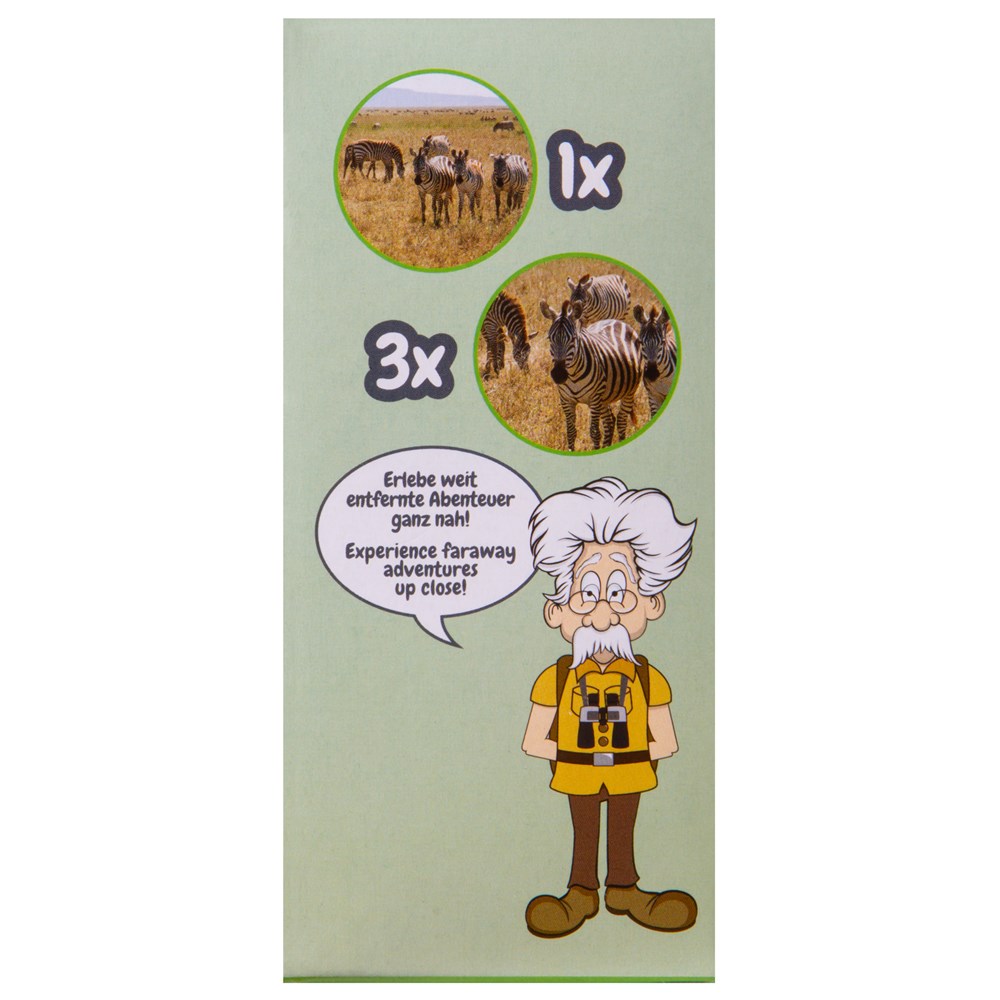 Bresser Junior 3x30 – детский бинокль, с которым прогулки станут намного интереснее! Вооружившись им, ребенок сможет детально изучать природу, городские строения, животных и птиц. А так как бинокль небольшой и легкий, брать его можно куда угодно: в зоопарк, на прогулку в парк, в загородную поездку, на дачу и в лес. Бинокль Bresser Junior 3x30 – яркий и необычный подарок юному исследователю окружающего мира В бинокле используется классическая roof-схема оптических элементов. Увеличение составляет 3 крата, диаметр объективов – 30 мм. Бинокль хорошо подходит для дневных наблюдений на открытых пространствах, при свете солнца он передает ясное и контрастное изображение. Из настроек доступны регулировка межзрачкового расстояния и настройка резкости. Барабан фокусировки расположен в центре, он крупный, поэтому ребенку будет легко его вращать. Также можно складывать и раскладывать наглазники. Корпус выполнен в интересном дизайне и ярко раскрашен.