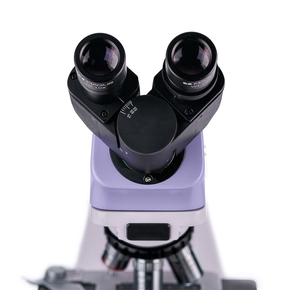 Микроскоп MAGUS Bio 230BL отлично подходит для исследования биологических образцов в рамках рутинной лабораторной или научно-исследовательской работы. С ним можно изучать полупрозрачные и прозрачные образцы в проходящем светодиодном свете. Микроскоп имеет ахроматическую оптику и продуманную конструкцию для настройки под разные условия наблюдений и под разных пользователей. Для микроскопа разработана линейка аксессуаров, которые позволяют увеличить диапазон кратности, получить больше увеличений внутри диапазона, использовать для наблюдений методы темного поля, поляризованного света и фазового контраста. Оптическая схема Оптика построена на базе объективов-ахроматов с корректировкой на бесконечность. В комплектацию включены 4 объектива, всего в револьверное устройство можно установить 5 объективов одновременно. Револьвер находится в положении «от наблюдателя», поэтому пространство над столиком свободно, а пользователю хорошо виден объектив, выбранный для работы. Микроскоп оснащен бинокулярной визуальной насадкой. Диоптрийная коррекция выполняется на левом окулярном тубусе, в него же можно установить цифровую камеру (приобретается отдельно). Окулярные тубусы вращаются на 360° для подстройки высоты выходного зрачка под рост наблюдателя. Оптика микроскопа рассчитана на бесконечность, в базовой комплектации наблюдения ведутся на увеличении от 40 до 1000 крат. С опциональными окулярами верхний предел кратности повышается до 1500х, 1600х или 2000х. Система освещения Для освещения рабочей области используется светодиод мощностью 3 Вт с долгим сроком работы – около 50 000 часов. Изменение яркости освещения не изменяет его цветовую температуру. Благодаря наличию полевой диафрагмы можно использовать метод Кёлера при настройке освещения. А в специальный слот конденсора можно устанавливать слайдеры: темного поля или фазового контраста. Использование слайдеров ускоряет переключение между разными методами исследования и делает работу с микроскопом более удобной. Механика У предметного столика нет выдвижной рейки, а препаратоводитель можно снять при ручном сканировании. Перемещение образца по столику осуществляется плавно. В нижней части корпуса находятся коаксиальные рукоятки грубой и тонкой фокусировки. Для грубой фокусировки предусмотрены регулировка жесткости хода и блокировка. Фокусировочный механизм отзывчивый, при настройке не требуются лишние усилия. Аксессуары В линейку аксессуаров, совместимых с микроскопом MAGUS Bio 230BL, входят: конденсоры темного поля, окуляры, объективы, устройства для исследований в поляризованном свете и с использованием фазового контраста, цифровые камеры, калибровочные слайды.