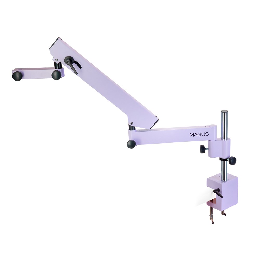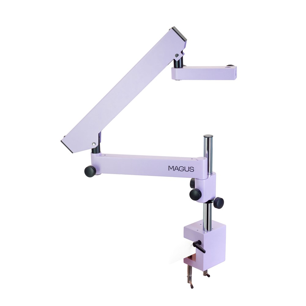 Универсальный штатив расширит рабочую зону, предоставит больше свободы в выборе положения оптической головы над рабочим местом. Штатив MAGUS UT1 состоит из четырех секций и крепится к краю рабочего стола при помощи надежной струбцины. Предусматривает регулировку по высоте, настройку горизонтального выноса и вращение. Предназначен для установки оптических голов MAGUS Stereo 7BH, Stereo 7TH, Stereo 8BH и Stereo 8TH с использованием механизмов фокусировки MAGUS FM1 и FM3. Для механизма фокусировки MAGUS FM3 дополнительно потребуется установочный палец MAGUS P32. Технические характеристики: • Максимальная высота, мм: 400 • Максимальный горизонтальный вынос, мм: 770 • Диаметр вертикальной штанги, мм: 25 • Длина вертикальной штанги, мм: 275 • Максимальная толщина стола для захвата струбциной, мм: 50