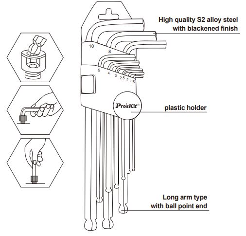 Набор шестигранных ключей с шариком ProsKit 8PK-028