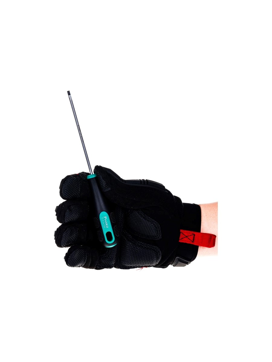 Отвертка Pro'sKit 9SD-205A (3.0x100мм.). Обрезиненная рукоятка, не допускающая проскальзывания, усовершенствованная форма рукоятки позволяет прикладывать большие усилия. Магнитный наконечник, покрытый черной оксидной пленкой предохраняющей от коррозии