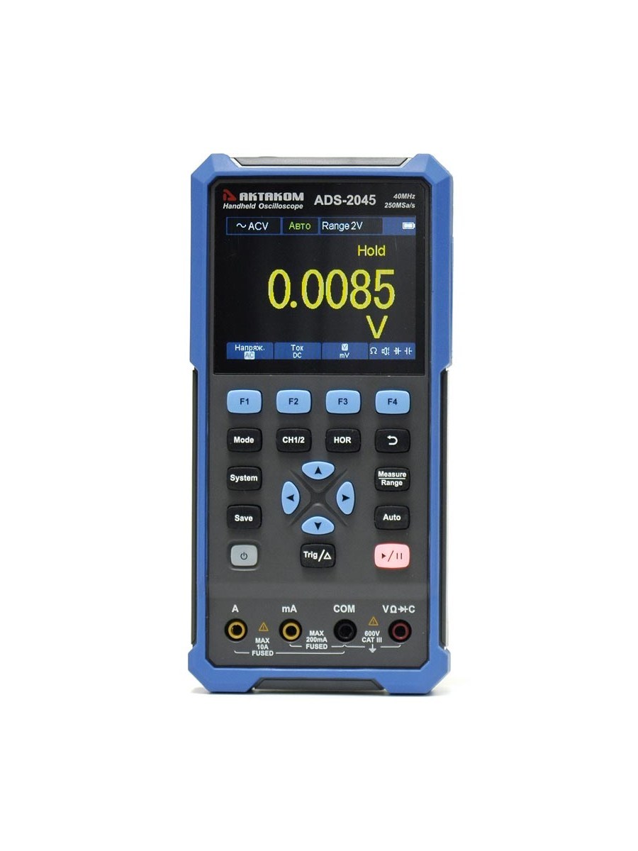Портативный прибор Актаком ADS-2045 сочетает в одном корпусе 3 измерительных устройства: двухканальный цифровой осциллограф, 4 1/2 - разрядный TrueRMS мультиметр и генератор сигналов специальной формы.