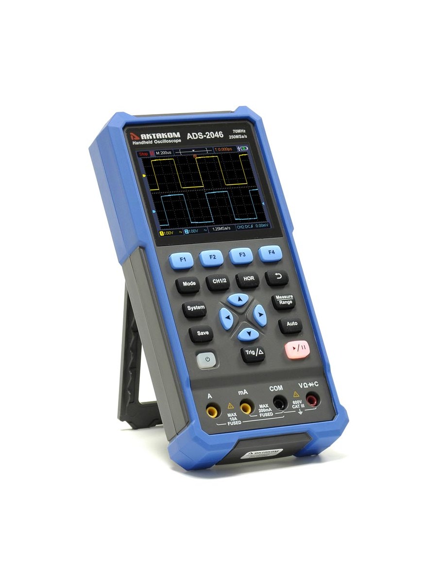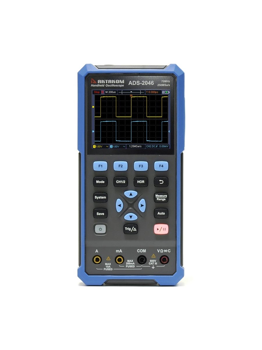 Портативный прибор Актаком ADS-2046 сочетает в одном корпусе 2 измерительных устройства: двухканальный цифровой осциллограф и 4 1/2 - разрядный TrueRMS мультиметр .