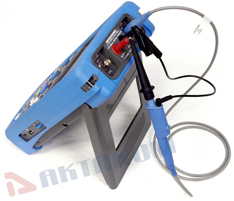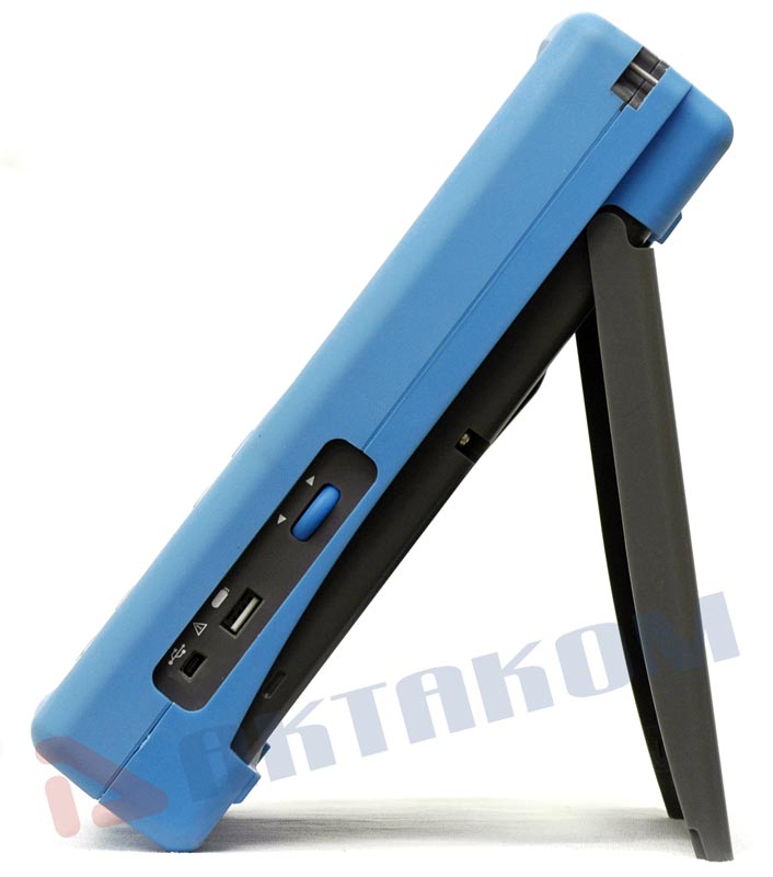 Осциллограф-мультиметр-регистратор. Осциллограф: полоса 70 МГц, 2 канала, макс. дискретизация 1 Гвыб/сек, макс. длина записи 240 К точек, вер. разр. 8 бит, разв. по верт. 5 мВ - 50 В/дел., по гор. 4 нс - 10 с/дел., 31 автоизмерение, курсорные измерения, запуск: фронт, импульс, логика, паралл.шины (UART, LIN, CAN,.SPI, I2C, MIL-STD-1553B, ARINC429), матем. и БПФ. Мультиметр: измерение напряжения (AC,DC,AC+DC), тока (AC,DC), сопротивления, емкости, прозвонка цепи, проверка диодов; статистика (макс.,мин., среднее), относит.измерения. Самописец в режимах мультиметра, осциллографа (измерение, график). USB Device, USB Host, цветной сенсорный 5,6" ЖКИ (640х480), аккумуляторное питание (7,4 В/6000 мАч). Размеры 254 х 160 х 60 мм, вес 1,4 кг.