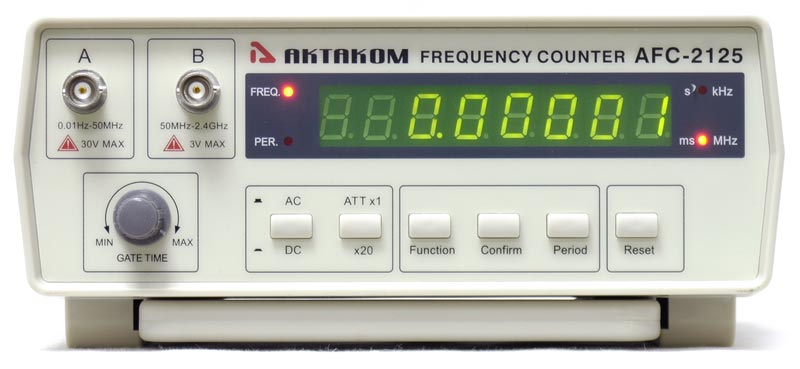Частотомер AFC-2125 предназначен для точного измерения частоты входного сигнала в широком диапазоне от 0,01 Гц до 2,4 ГГц, а также периода повторения сигнала. Прибор имеет встроенную схему температурной компенсации, что позволяет уменьшить погрешность измерения, вызванную температурным дрифтом. Идеальный выбор для радиолюбителей, образовательных учреждений и организаций с небольшим бюджетом.