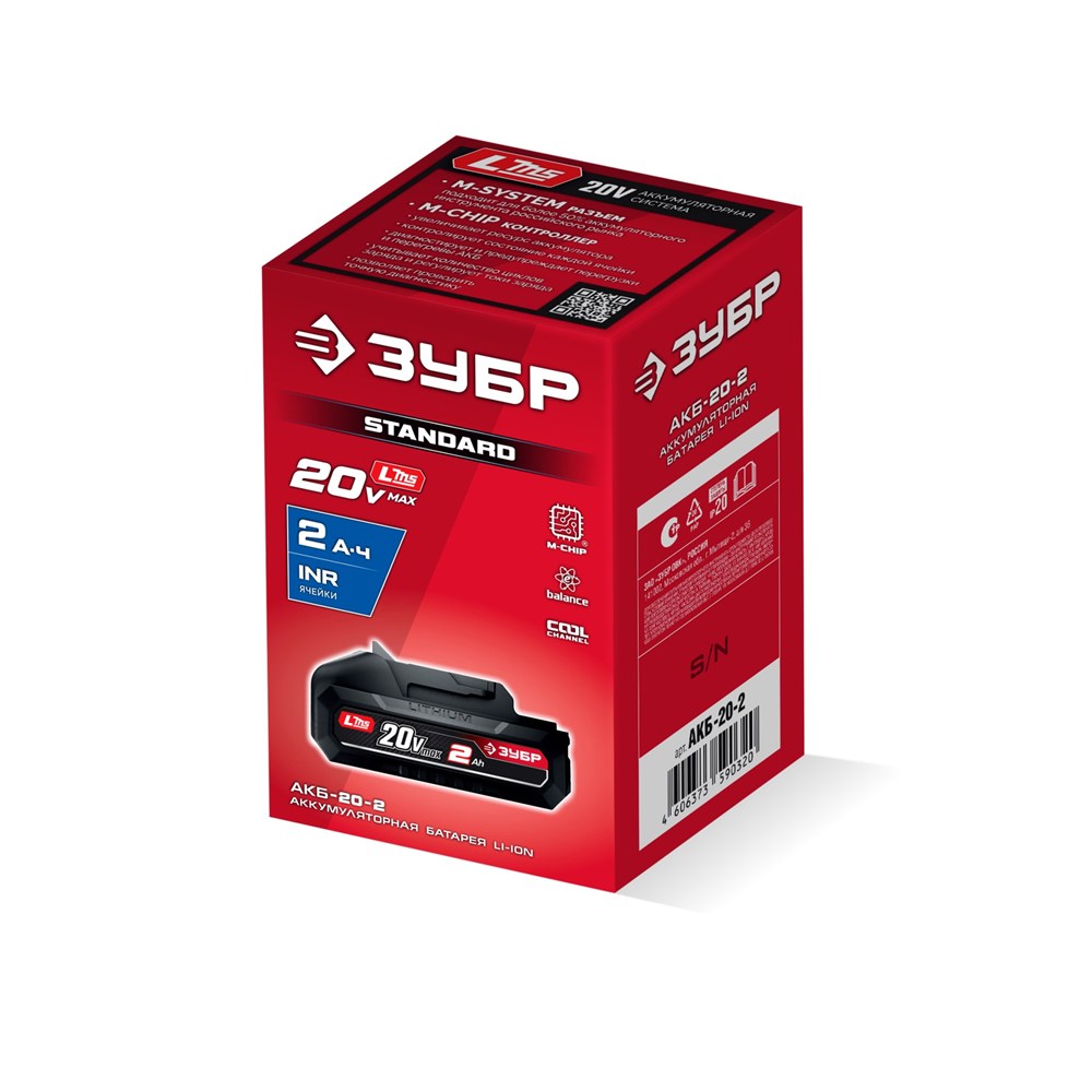 ЗУБР 20 В, 2.0 А·ч, аккумулятор LMS (АКБ-20-2)