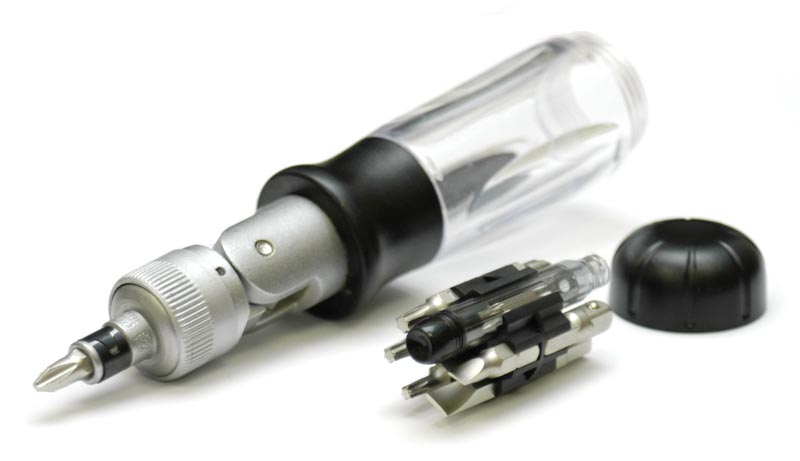 Отвёртка имеет отделение для хранения насадок в ручке